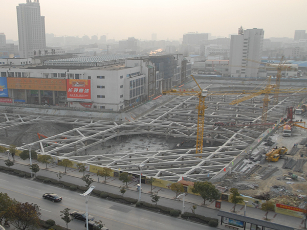 揚州市商城商圈C地塊位于揚州市開發區江陽中路與維揚路交界處西北角,原商城的北側及東側,周邊鄰近多幢建筑及市區主干道。基坑總面積約20000 m2,支護周長約830m。挖深9.5m~11.5m。