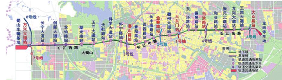 南京至高淳城際快速軌道南京南站至祿口機(jī)場(chǎng)段南起祿口機(jī)場(chǎng)(6號(hào)線),經(jīng)祿口新城、東善橋-秣陵片區(qū)、東山副城西側(cè),止于南京南站,全長(zhǎng)約35.8km,其中高架段長(zhǎng)約16.9km,過(guò)渡段長(zhǎng)約0.7km,地下段長(zhǎng)約18.2km。機(jī)場(chǎng)段共設(shè)置8座車站,其中高架車站3座,地下車站5座;最大站間距為祿口機(jī)場(chǎng)站至祿口新城南站區(qū)間,長(zhǎng)約7922.8m,最短站間距為將軍路站至佛城西路站區(qū)間,長(zhǎng)約3239.1m。設(shè)置車輛段一座,位于祿口新城南附近。