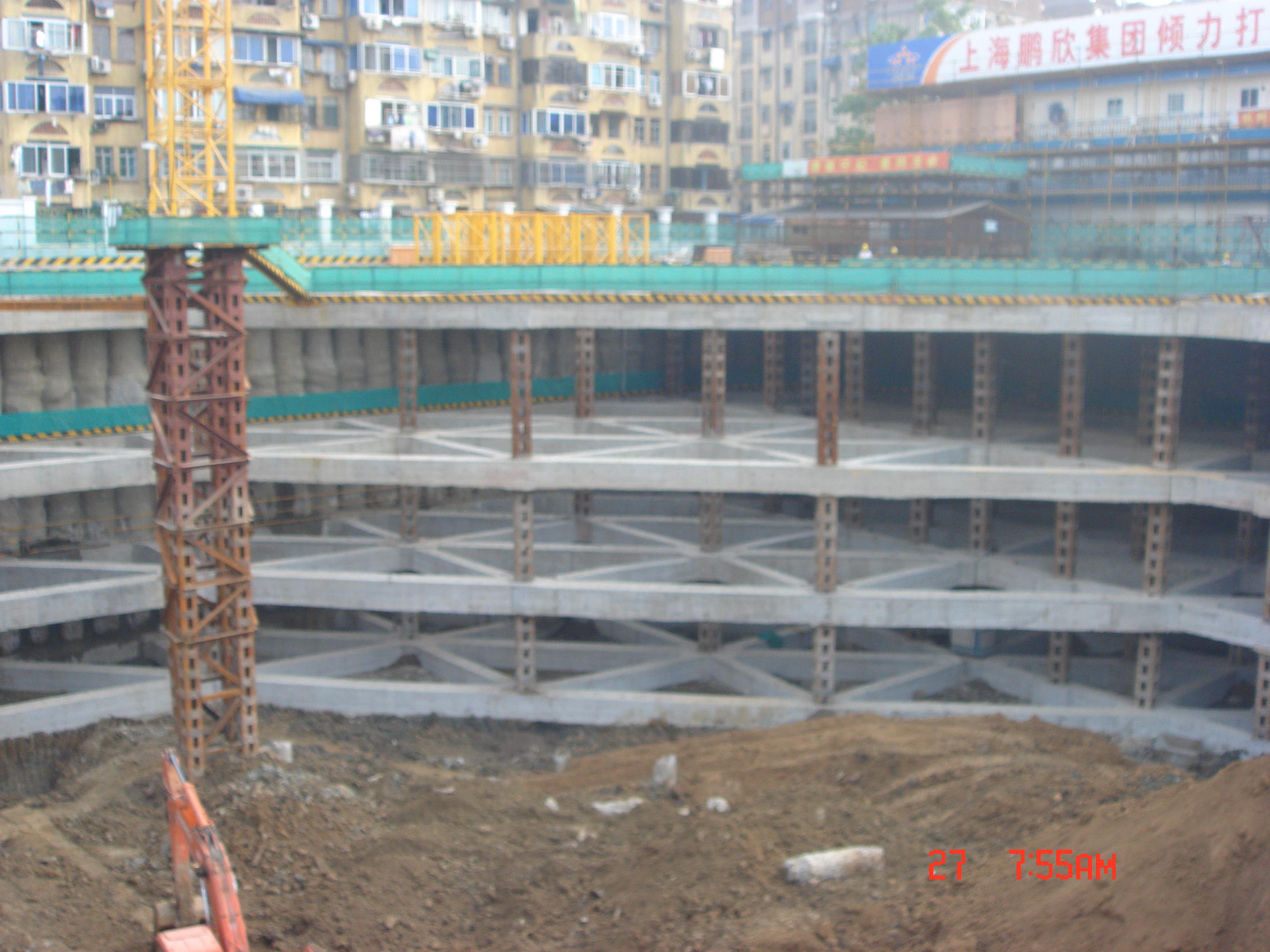 項(xiàng)目位于建康路和中華路交界處東北角,南京外運(yùn)大廈南側(cè)。工程主樓為3幢15~16層,裙樓4~5層,整體設(shè)有4層地下室,基坑南北長(zhǎng)170m,東西寬140m,基坑圍長(zhǎng)608m,開挖深度20m。采用鉆孔灌注樁+4層砼支撐的支護(hù)形式,坑外施工三軸深層攪拌樁作為止水帷,基坑支護(hù)結(jié)構(gòu)的安全等級(jí)為"一級(jí)"。南京市優(yōu)秀工程測(cè)繪一等獎(jiǎng),江蘇省城鄉(xiāng)建設(shè)系統(tǒng)優(yōu)秀勘察設(shè)計(jì)二等獎(jiǎng),江蘇省第十二屆優(yōu)秀工程勘察二等獎(jiǎng)。