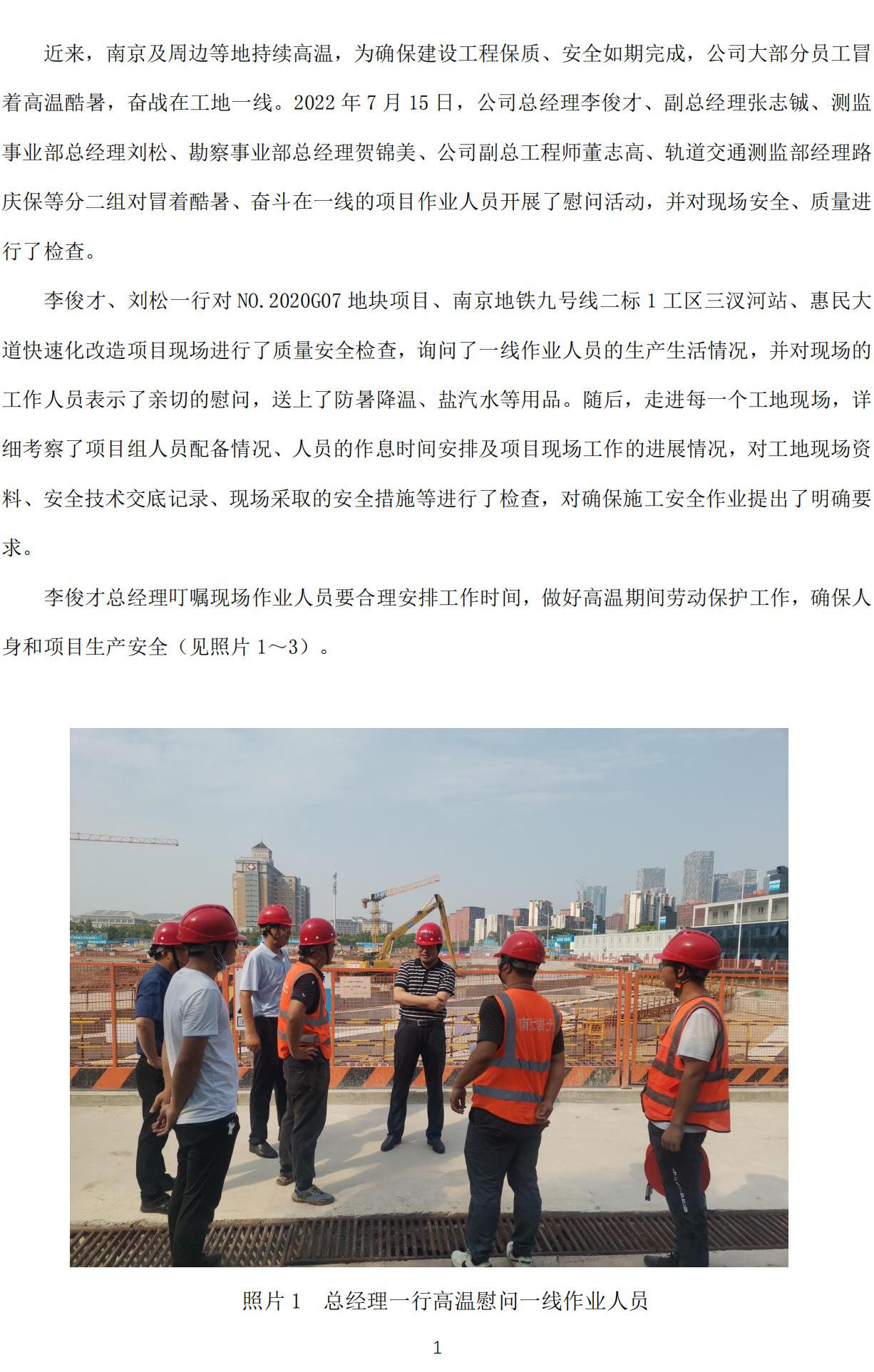公司領導慰問一線員工并進行安全、質量檢查簡報
